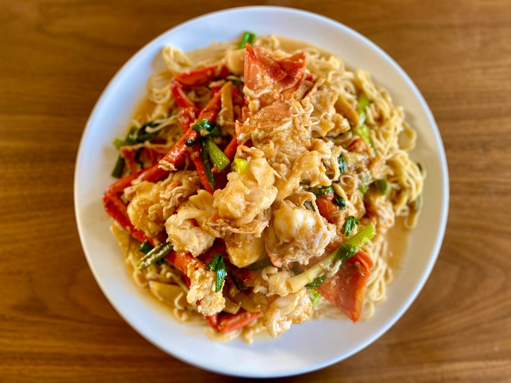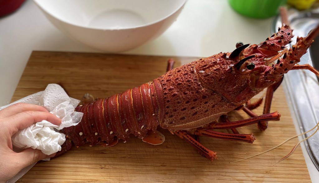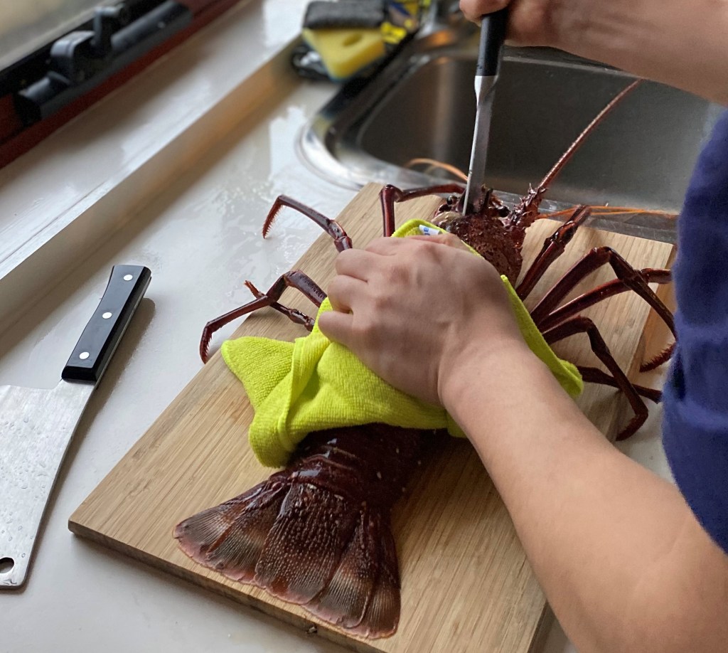 During this struggling period of COVID-19 pandemic, it is important for everyone to try to look at the bright side of things and stay positive! One big positive – CHEAP lobsters! Live Western Rock lobster at $78 per kg. This is a great opportunity to finally practice cooking one of the famous Chinese banquet dishes, Cantonese-style Wok-fried Lobster Noodles. This dish can be served with crab instead, which we would much prefer to cook and eat but we could not find any. Guess it’s not in season yet…