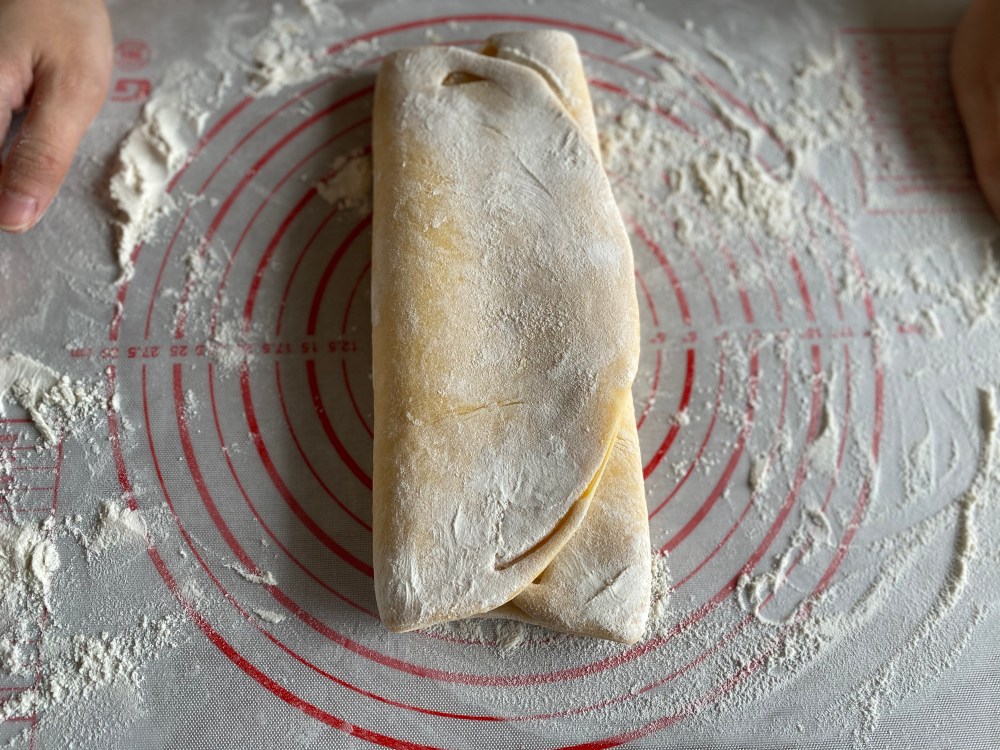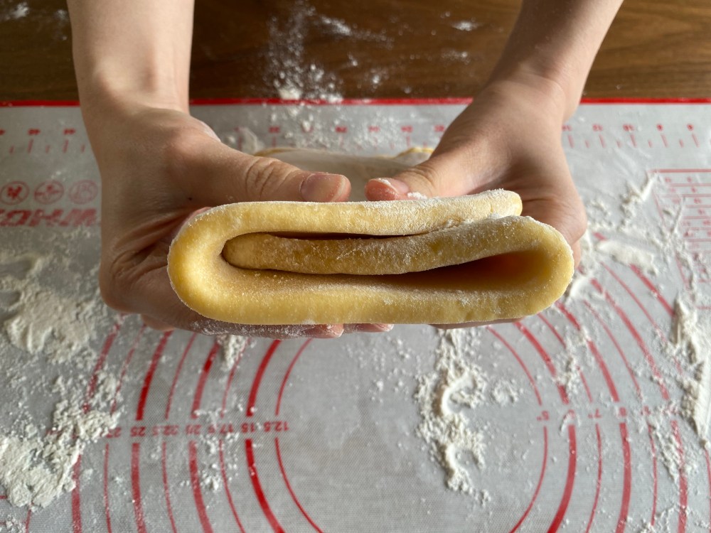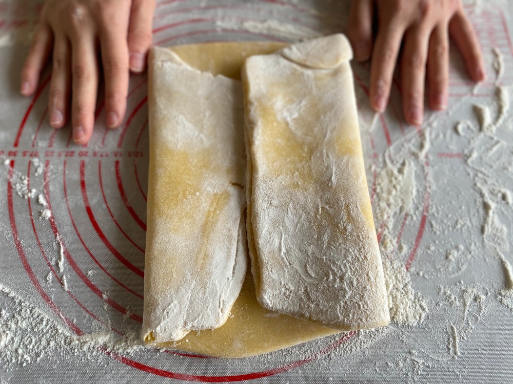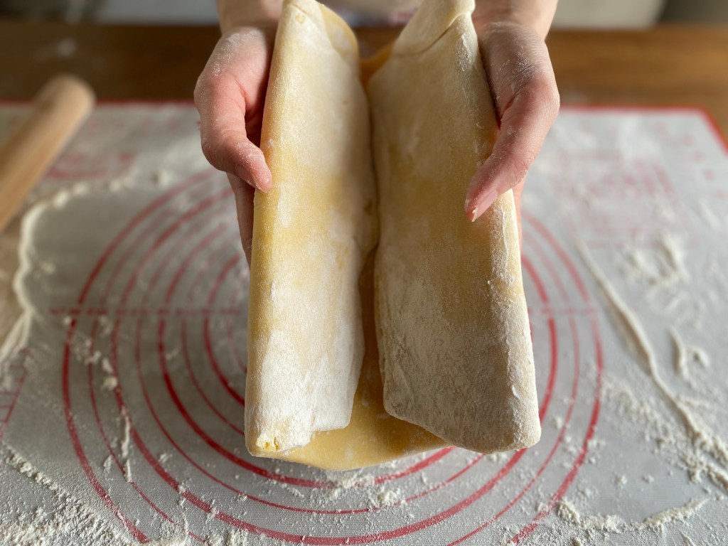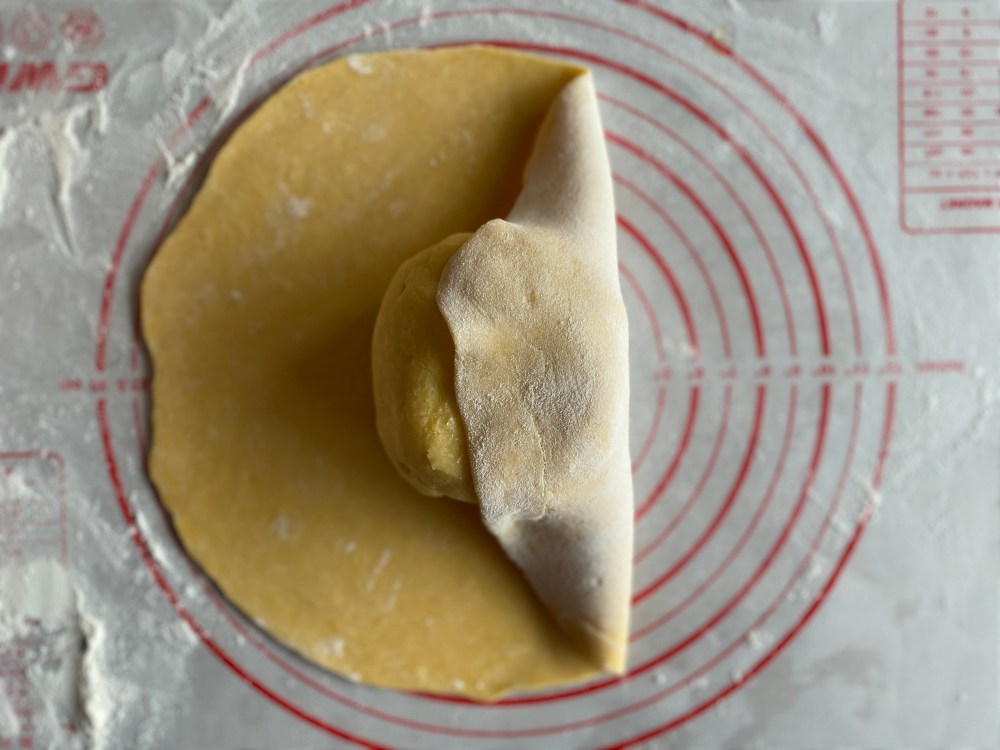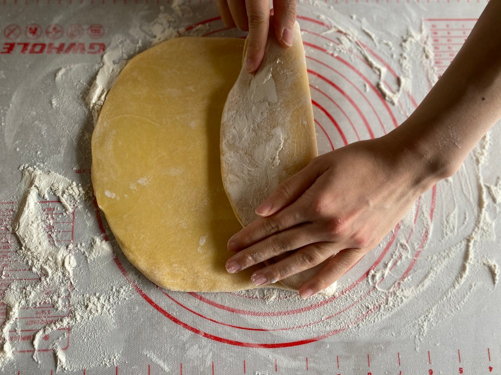 For this recipe, we actually recommend making the egg filling earlier on to allow the sugar to fully dissolve and the entire mixture to fully settle. If you use it too soon, you may notice voids in your egg filling. Allow plenty of time ahead to prepare the pastry. It consist of an oil dough and a water dough which will both get folded together after a 30-minute chilling in the fridge. You may either use your bare hands to knead them (we have not tried this cos we got NO muscles!), or a mixer. From our experience, the food processor was a life saviour!