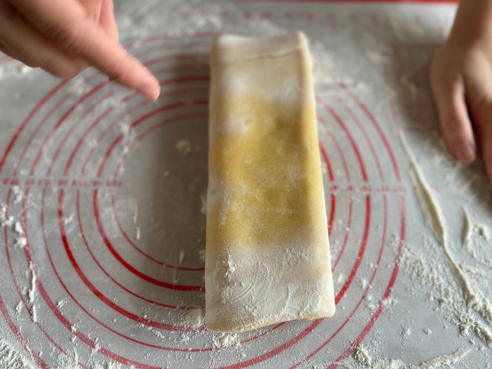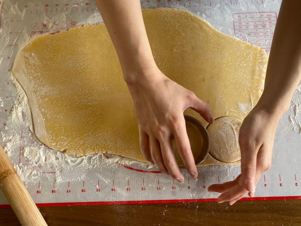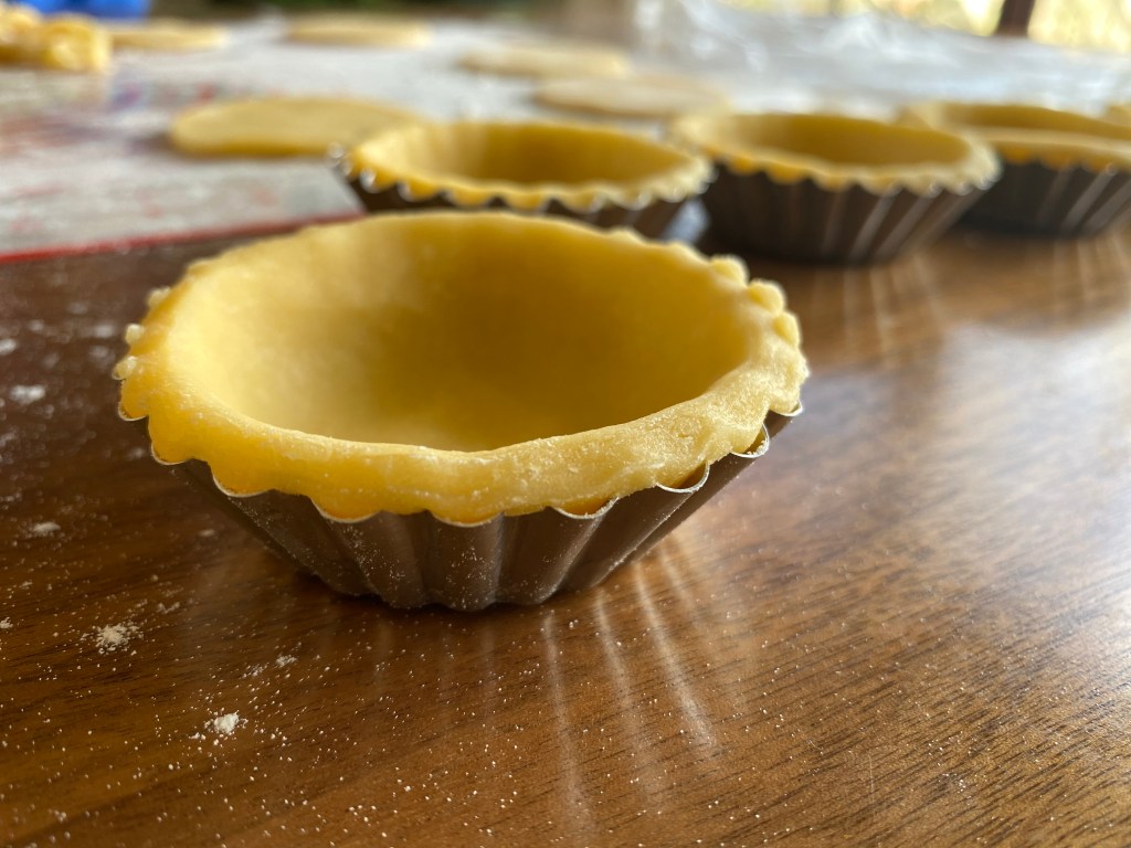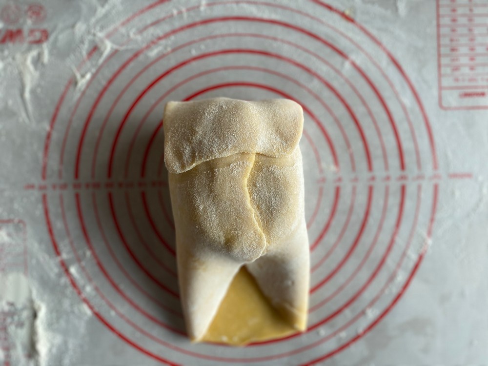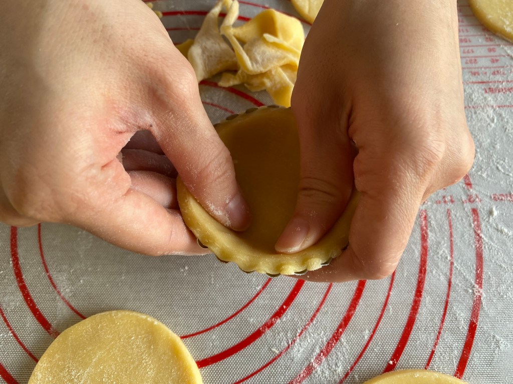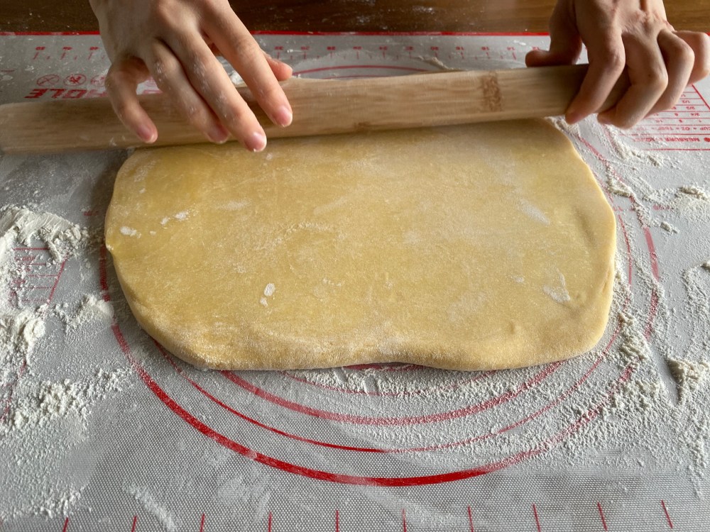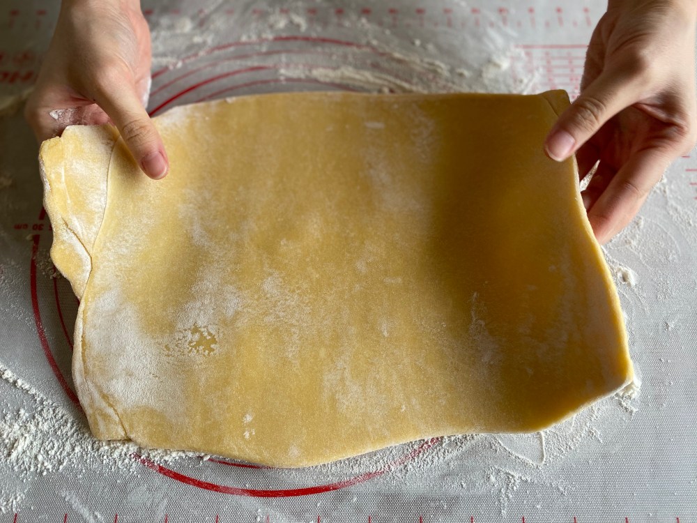 After first 30 minutes, you remove both doughs, roll out the water dough enough to fully wrap and encase the oil dough. Let it chill in the fridge again for 30 minutes, after which you begin folding! You will have to fold, put in the fridge, fold again, put in the fridge, and fold AGAIN, and put in the fridge. A lot of repetition! But it’ll give you those nice puffy layers! First and second folds, you’ll need 3 layers and the last third fold, you’ll need 4 layers. Eventually, you’ll have to roll the pastry into 5mm thickness, ready for the circles to be cut out. If you don’t have egg tart molds, you can try using small muffin trays as well but they won’t have that traditional shape of the pastry.