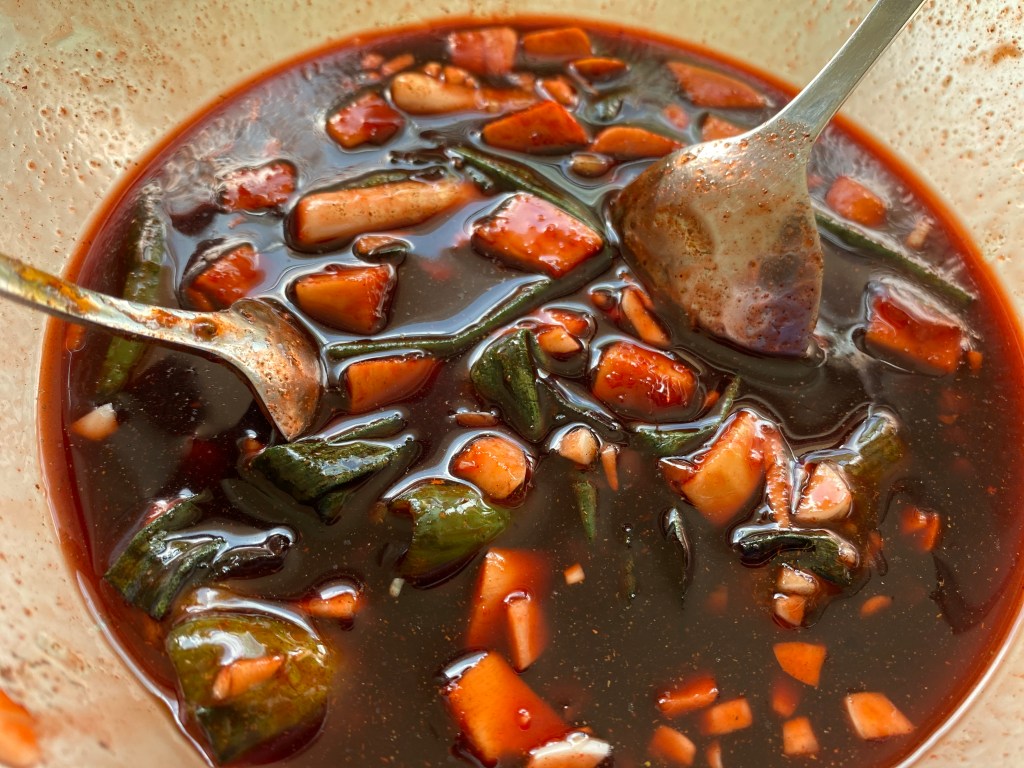 The first step: purchase a pork neck scotch and slice it into approximately 3-cm thick long strips. Next prepare the marinade and mix the content well. You will need to continuously stir until the maltose is fully dissolved. Marinate the thin pork strips at least overnight, we highly recommend this for the best result. We have tried pork tenderloin, it was tender…. but we felt it wasn’t the right cut in terms of overall flavour.