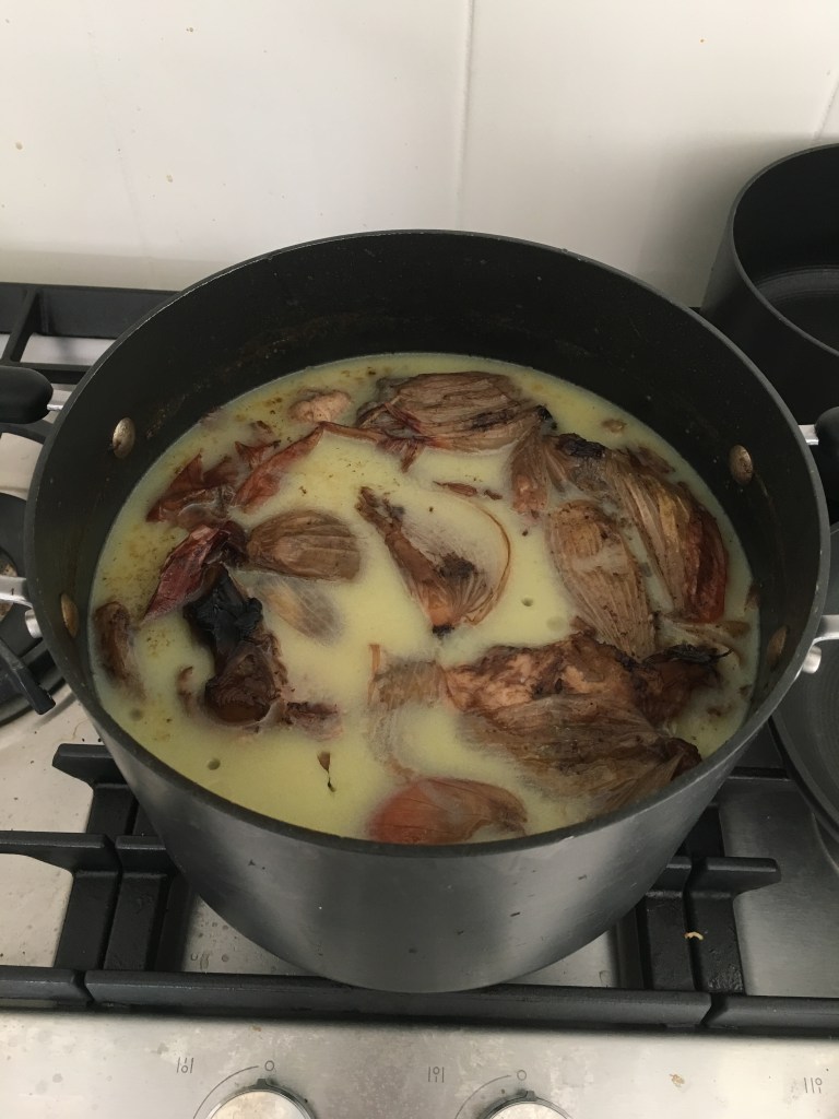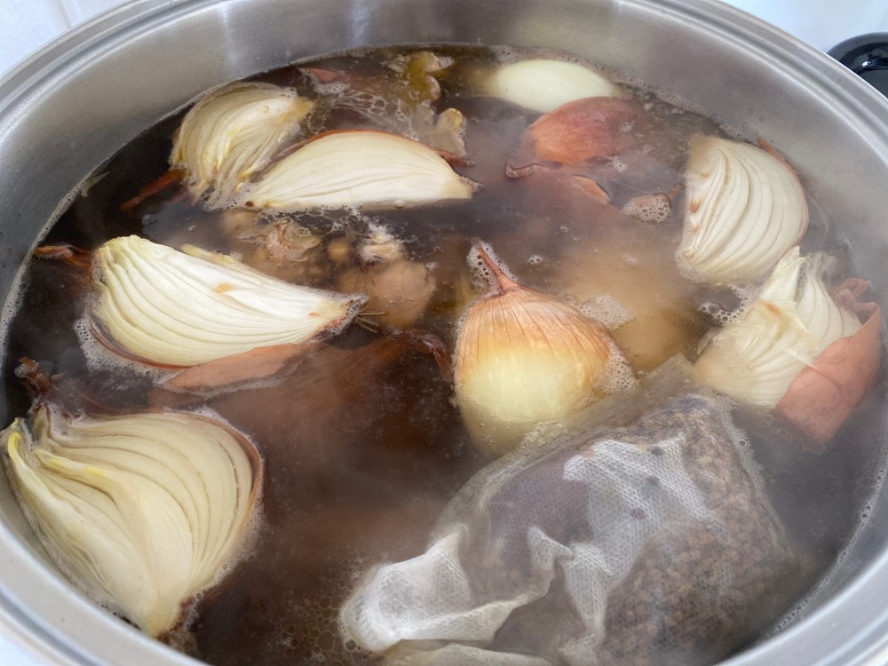 Prep the ginger and onions, skins can be left on for bettering coloring of the broth. Make sure to toast the spices till they are fragrant. Seasonings are added in the beginning, so that at the end, all you need to do is reduce it to desired flavour. Keep an eye on the stove frequently, sift the fat and add water in covering the bones every now and then. If you can, cook half way or nearing end, leave overnight for fat to solidify for clean removal of fat. you’d see a thick yellow layer. Next day, continue cooking till it adds up to about 8-10 hours of cooking. I know sounds crazy! 8-10 hours is ridiculous!!! But trust us, it does make a difference.