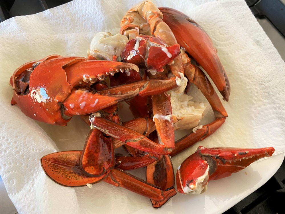 – Colour and texture of the crab should be dull (not shiny) with no pattern/mottle. Check the right crushing claw teeth, it should be blunt and worn.