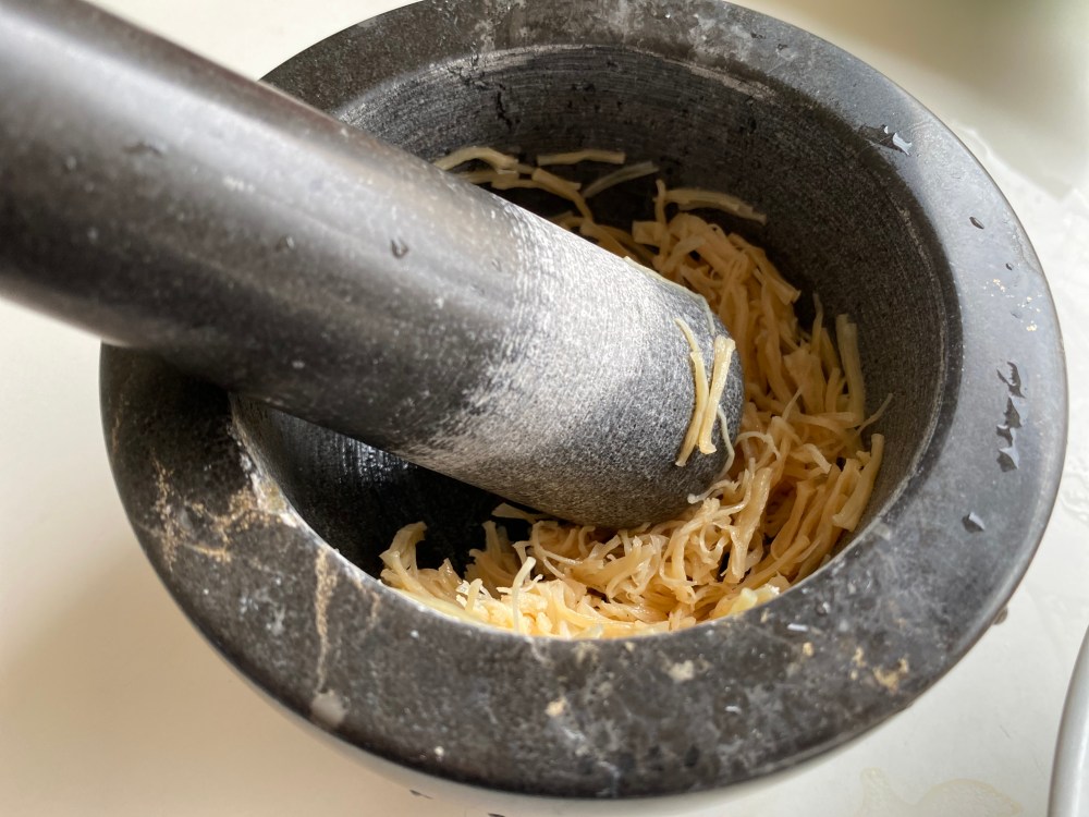 Firstly, you want to soak the dried scallops, preferrably overnight and then shred it on the next day. Do not throw the liquid! Reserve this later when we combine all the ingredents together in wok.