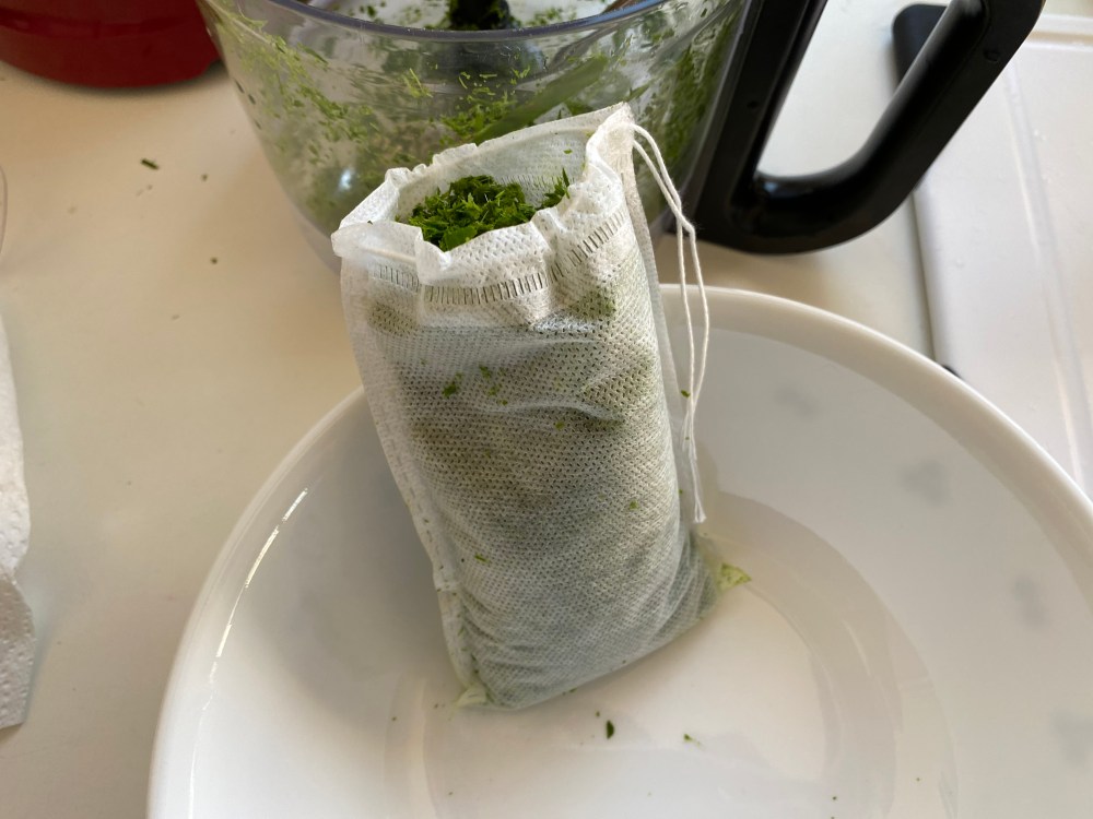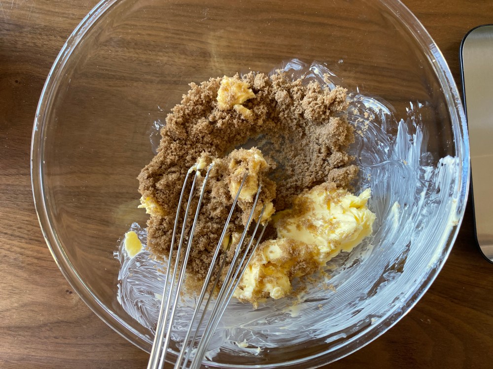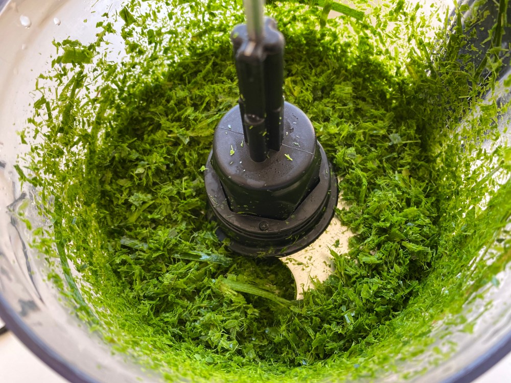 Here we go! First, prepare the cookie dough. In a large bowl, combine and mix softened salted butter and brown sugar. Add egg and mix, then pour and mix in pandan juice and extract. To prepare the pandan juice, roughly chop the pandan leaves and blend them in a processor for about 5~8 minutes. Place processed leaves in a cheesecloth and squeeze hard. Sieve through the juice once more to get rid of any leaf bits.