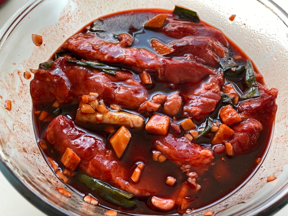 - Marinate pork with listed ingredients overnight in the refrigerator.
