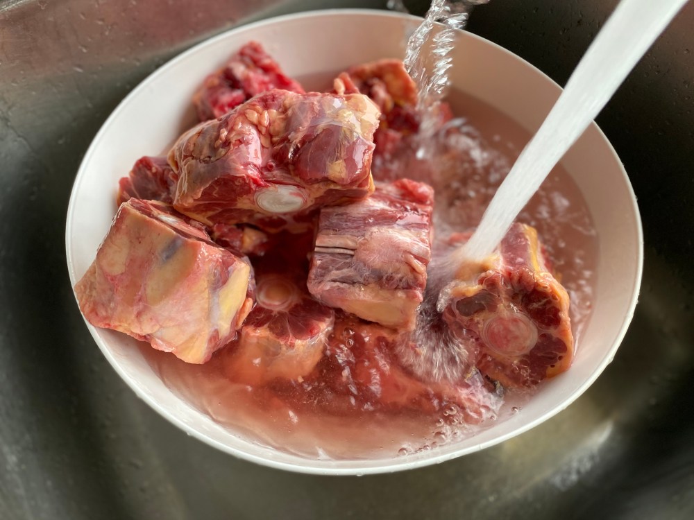 - Wash and rinse oxtail pieces. (For a cleaner, less fatty and less gamy meat taste, you may blanch oxtail pieces by putting them into a pot of cold water and bringing it to boil for 3 mins. Pour out the water along with all the scum and rinse pieces).