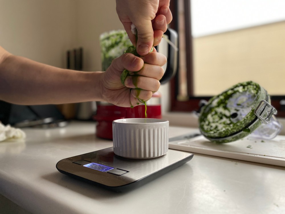 - 20 grams Pandan juice (~10 Pandan leaves + 1 tablespoon water + 1 tablespoon Coconut Milk)