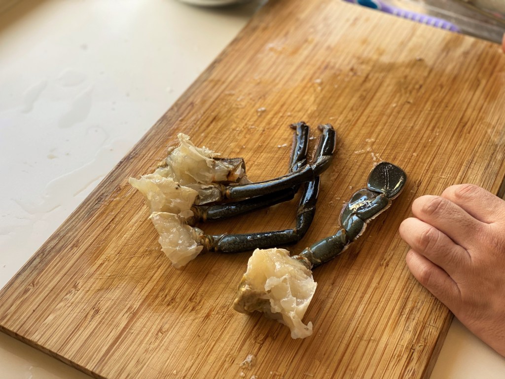 - Flash fry crab: pour deep frying oil into saucepan, heat it up to around 180ยฐC, and fry pieces (in batches if saucepan is small) until they turn bright red. This should take no longer than a minute. Leave aside to drain.