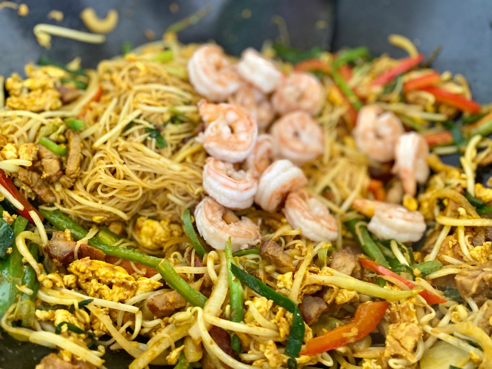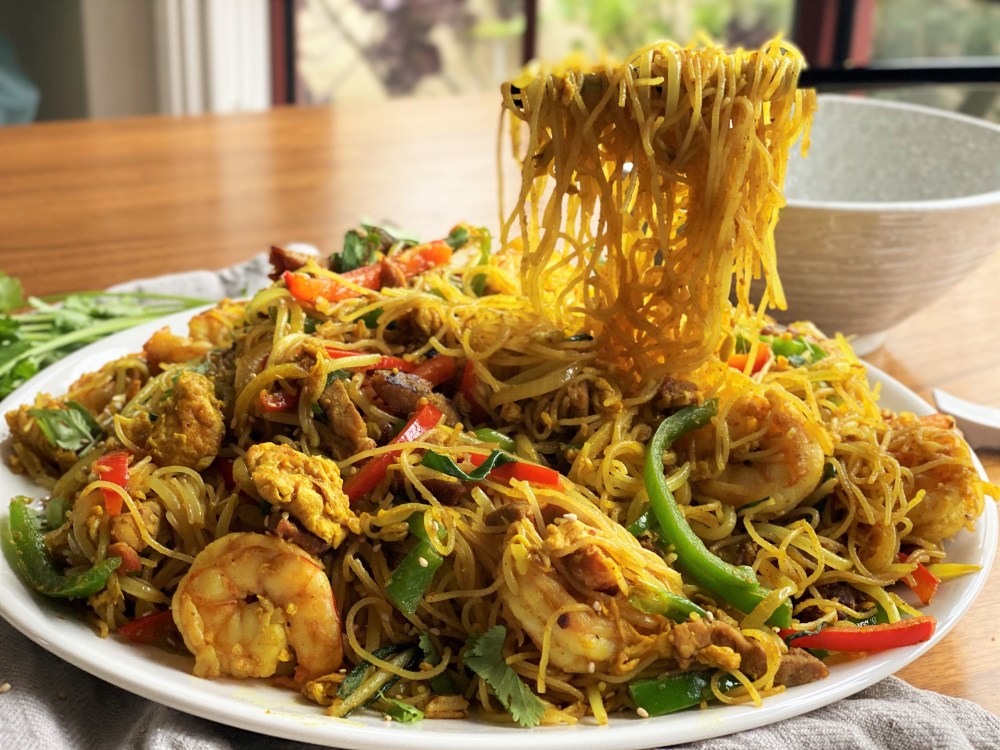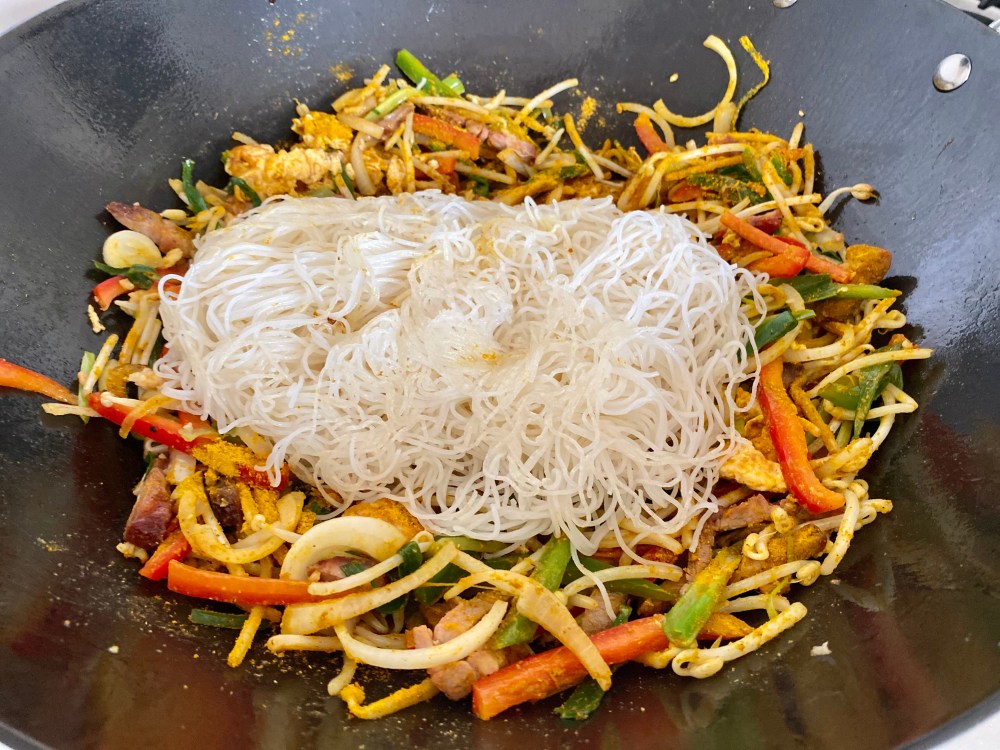 - Add in the partially cooked vermicelli noodles, together with light soy sauce, Shaoxing wine, fish sauce, sugar and white pepper. Using the wok spatula, carefully press on the noodles to shake and separate them without shredding them too much into short noodles. Mix noodles well with all the ingredients. Season with salt to your liking. In the last 10 to 20 seconds, toss in the prawns and mix.